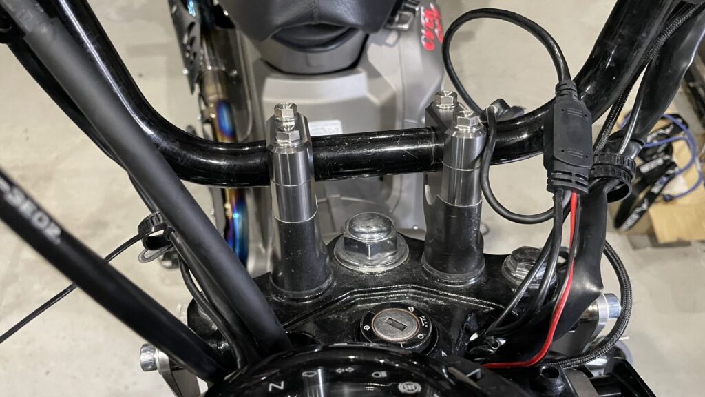 ただ1つだけ問題があって、ハンドルを19mmアップさせた場合、アクセルワイヤーかパツパツになるので、ハンドルが左にキレなくなりました。