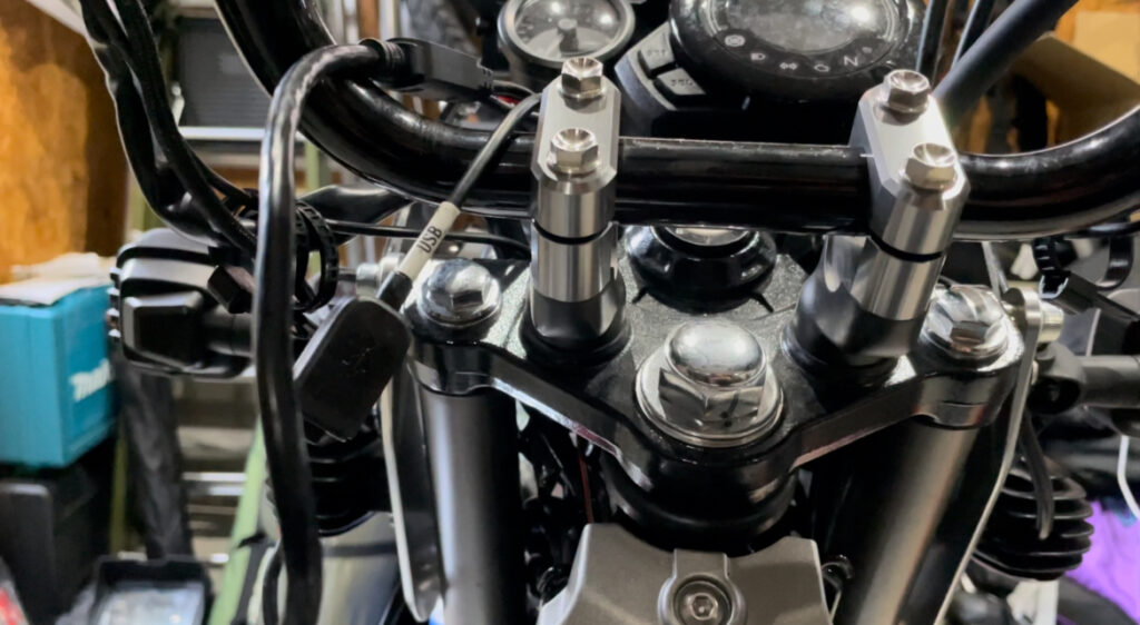 19mm以上アップ出来るような商品を選んだ場合、ワイヤーなどの長さが足りなくなる事もあるので、心配な方は14mmの商品を選んで下さい。OVER Racingの商品の場合、前側にオフセット可能なのでハンドルとの間のスペースに窮屈感を感じるなら、OVERRacingの商品がオススメです。