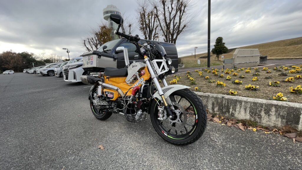 ハンターカブに乗っている人なら共感してもらえると思いますが、低速から中速にかけての加速感が弱くて、高回転でグッと加速するのが特徴です。街乗りでトコトコ走る分には影響ないのですが、1速からビューンと気持ちよく走ることは出来ません。