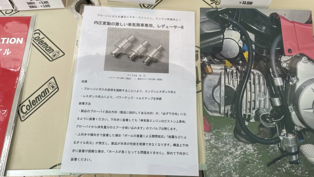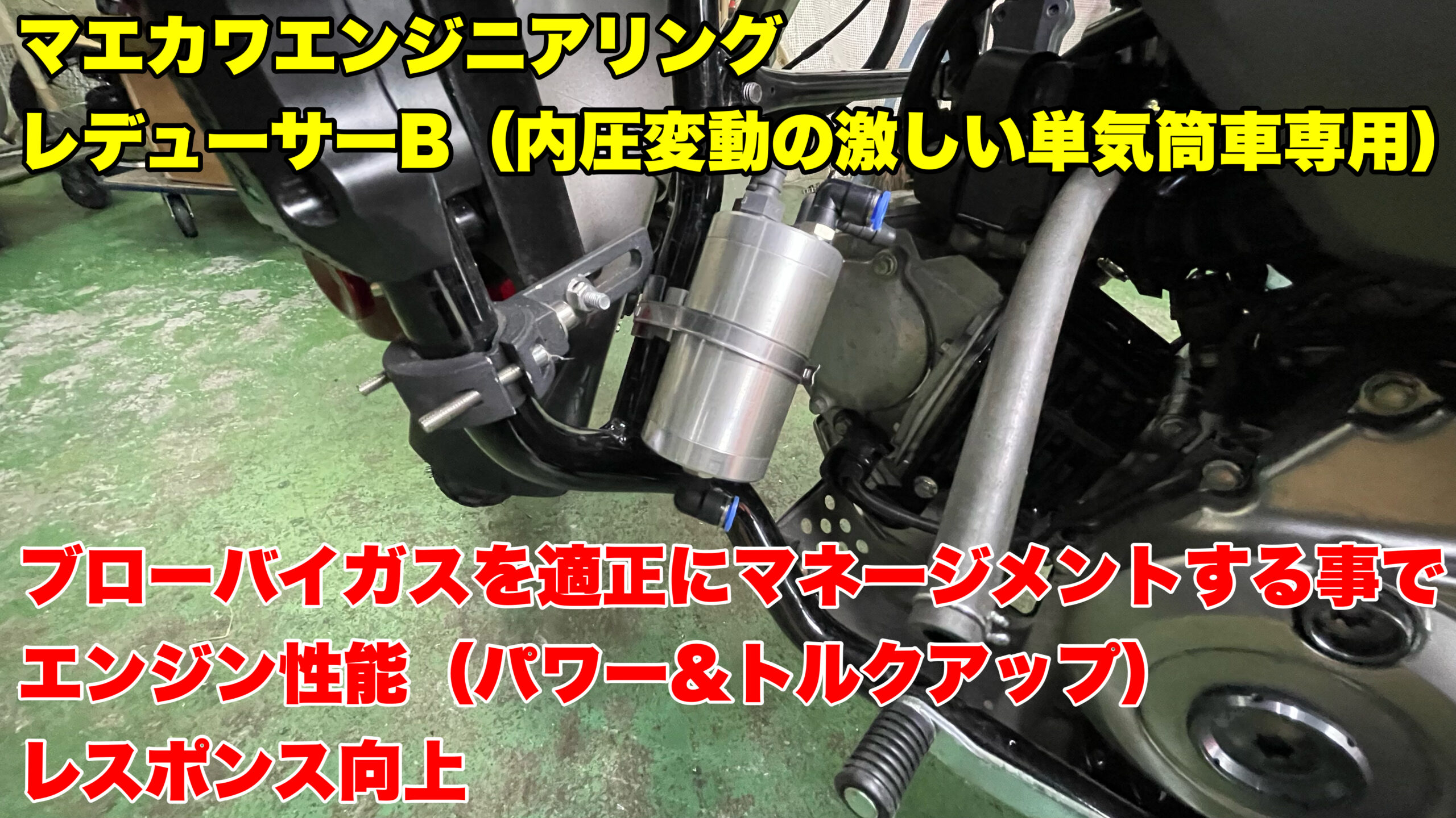 レデューサーBは、手軽に導入できるように価格を抑えた「ボールバルブ方式」を採用した製品で、エンジン内のブローバイガスをコントロールし、クランクケース内を減圧することでエンジン性能が向上する商品です。