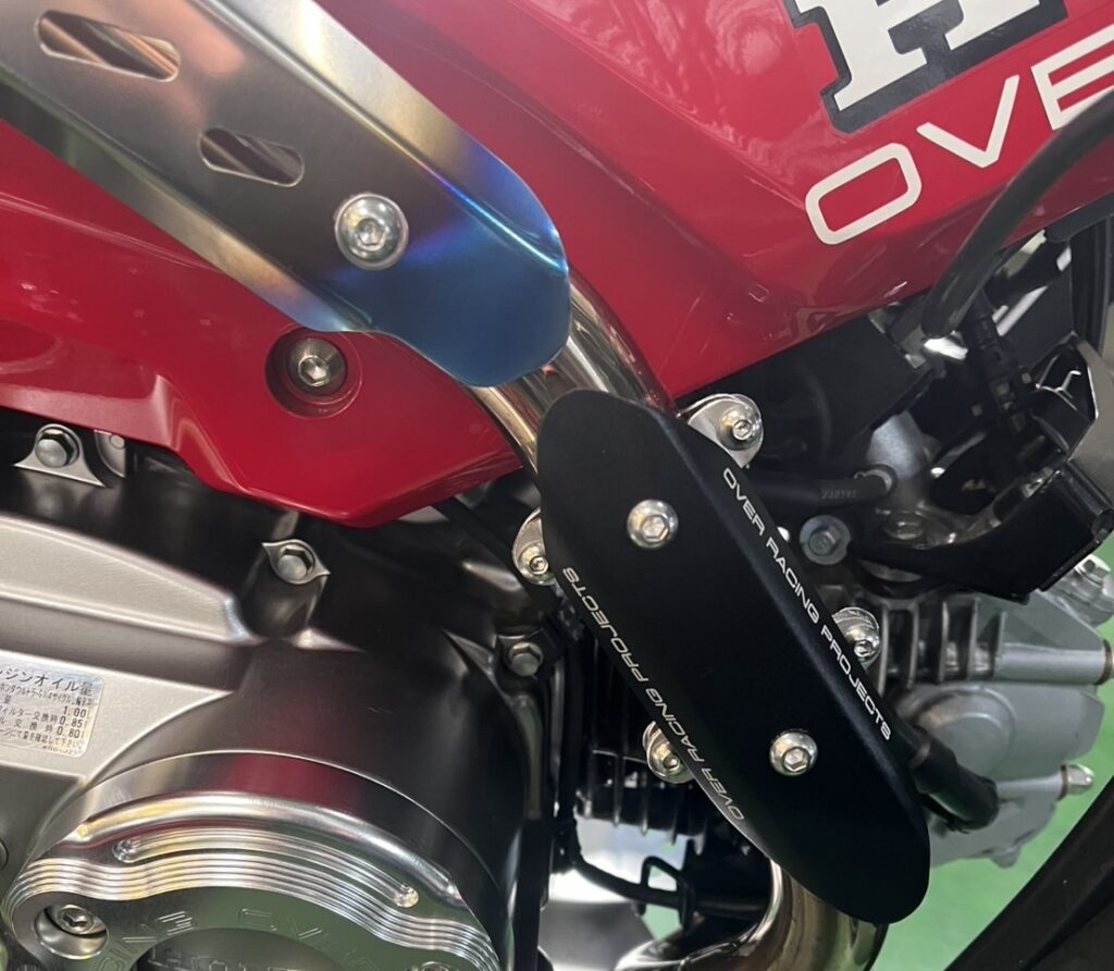 OVER Racingのプロトタイプの『マフラーガード(ラージタイプ)』をハンターカブに取付してみましたが、専用クランプも付いているので、六角レンチがあれば誰でも簡単に取付可能です。