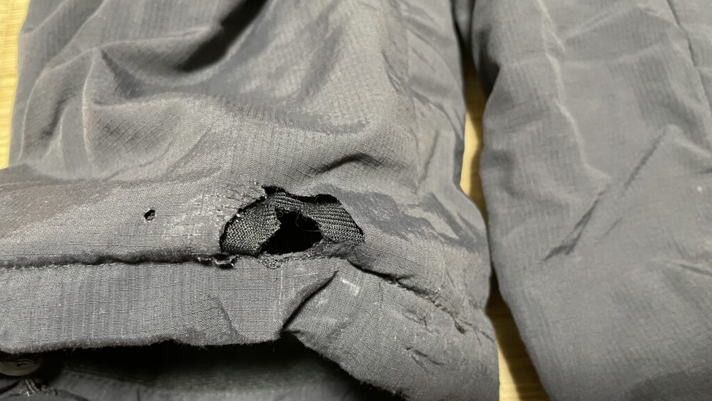上下で4,900円と格安の商品ですが、穴が開くと結構ショックです。