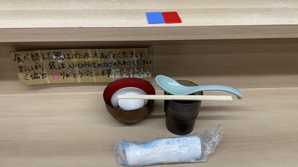 必要な物を机に並べたら、ラーメンが作られる工程を眺めながら待ちます。