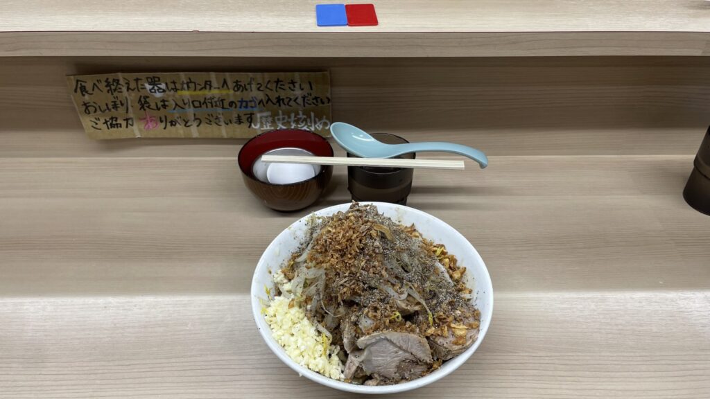 ニンニクあり、アブラマシで注文しましたが『別添えアブラ』は貰えませんでした。スルーされたのかマシマシにしないと貰えないのか分かりませんが、別添えのアブラも試したかった。