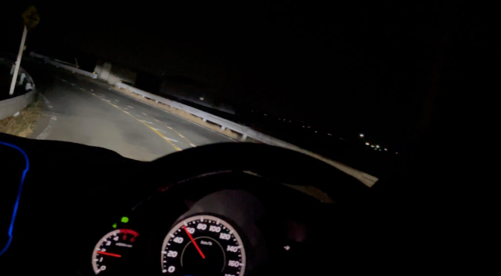 コーナリング時に曲がりにくいと感じたコーナーで法定速度ギリギリで侵入してみましたが、いつもよりハンドルを深く切らなくても曲がっていきます。