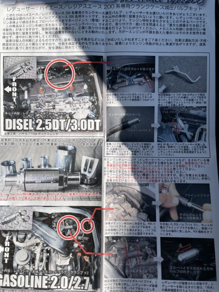 今回レデューサーを取付する車両は1型ハイエース2.5DT(200系)です。