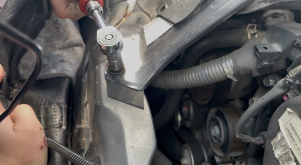 ワイドの場合は隙間が広い為、そのまま作業出来るそうですが、標準バンの場合はエンジンカバーを外す必要があります。