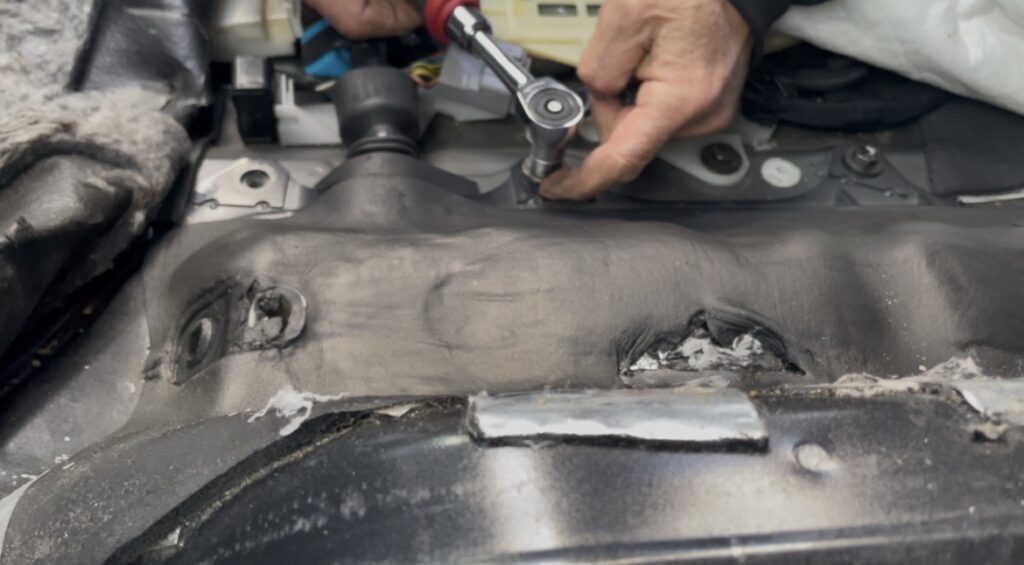 一般的なレンチでも外せますが、電動ラチェットがあると作業時間短縮になります。