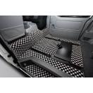 スライドレール本体を固定していきます。固定位置にスライドレール本体を置いたら、レールの幅に合わせて、フロアマットをハサミで切っていきます。